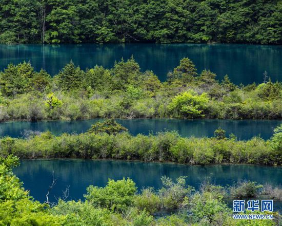 九寨溝風景名勝區(qū)內的“樹正群海”(6月18日攝)。新華社記者 沈伯韓 攝