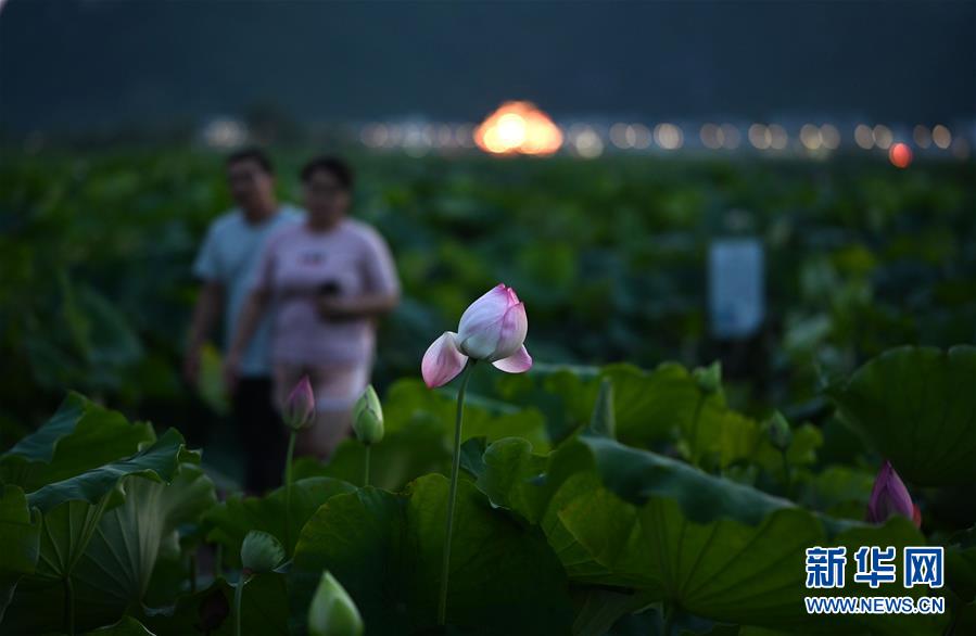 6月28日,游客在廣西柳州市柳江區(qū)百朋鎮(zhèn)萬畝荷塘里游玩。新華社發(fā)(黎寒池 攝)