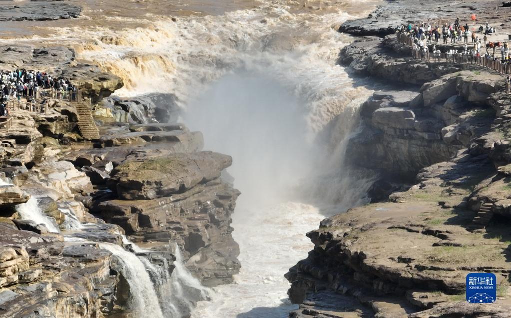 暑期,眾多游客來到位于陜西宜川縣和山西吉縣交界處的黃河壺口瀑布游覽,領略壺口瀑布美景。