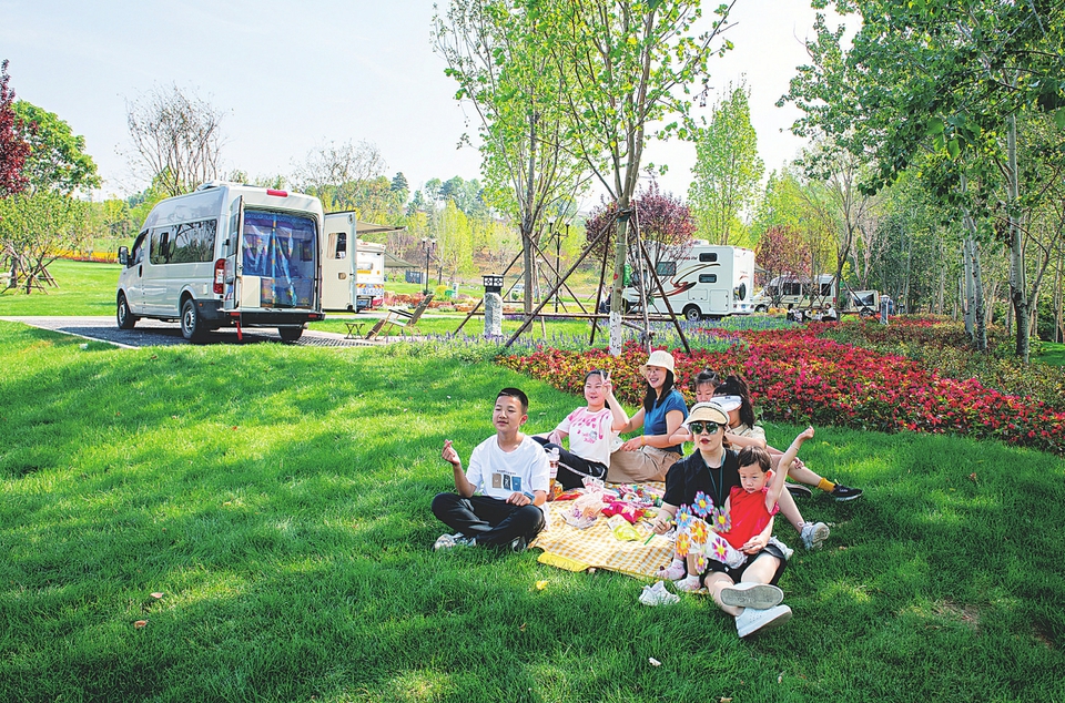 不僅民宿迎來(lái)眾多客流,各景區(qū)的露營(yíng)活動(dòng)也吸引了大量避暑游客。在圣天湖景區(qū)的房車帳篷營(yíng)地,游客可以在此開(kāi)展房車露營(yíng)、燒烤、自助特色餐飲、草坪親子、篝火晚會(huì)等多種活動(dòng)。