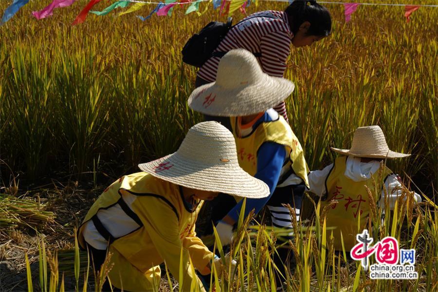 香村的管家將草帽與鐮刀發(fā)放給孩子們,再由經(jīng)驗(yàn)頗豐的伯伯示范,再到實(shí)操,一場歡樂的割稻子活動在田間展開。參與勞作,真切體會那句“粒粒皆辛苦”,在割稻子現(xiàn)場,也能感受到大人們也躍躍欲試,“這邊,這樣割,不對,不對,哎呀……我來”略顯著急的“指揮”著孩子,或許,這樣的場景也帶給家長們重回童年無憂時(shí)光的快樂。