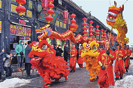 喬家大院開展非遺、民俗、美食、搭彩樓、看社火、趕集市、購年貨、搶紅包等多種形式的傳統(tǒng)年俗活動,讓游客相聚喬院,感受新年的溫暖和快樂。