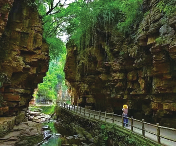 兵部寨有多處觀景臺可以俯瞰,下面是三郊口水庫,由于地勢險要、道路不能通車,所以更加適合徒步旅行。在兵部寨下面,有一段廢棄的掛壁公路,只能步行通過,共有5個山洞相連,是拍照取景的絕佳地點(diǎn)。