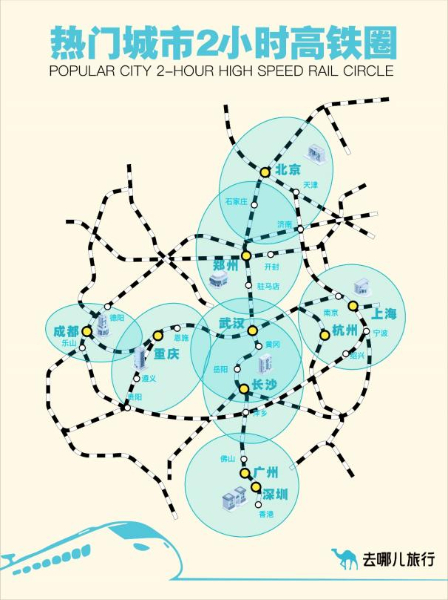 從去哪兒火車票預(yù)約情況來(lái)看,2小時(shí)高鐵圈內(nèi)仍是旅客出游的主要目的地。北京2小時(shí)高鐵圈內(nèi),熱門(mén)目的地為天津、濟(jì)南、石家莊、秦皇島、大同;上海2小時(shí)高鐵圈,熱門(mén)目的地為杭州、蘇州、南京、湖州、寧波。