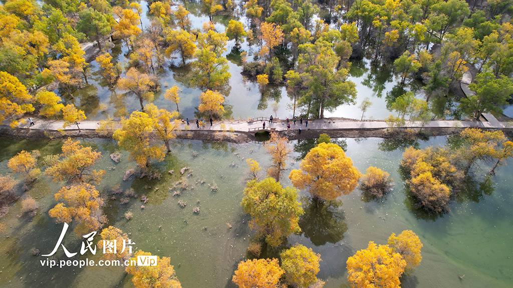 2024年9月27日,甘肅省酒泉市金塔沙漠胡楊林景區(qū)萬畝生態(tài)胡楊林層林盡染,景美如畫。曹紅祖攝(人民圖片網(wǎng))