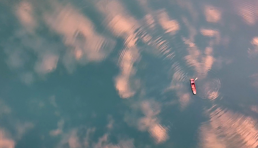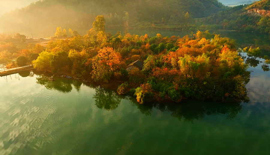 泛舟秋水一湖平 朝霞漫天秋意濃