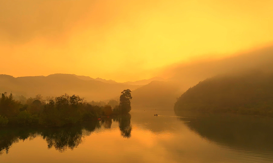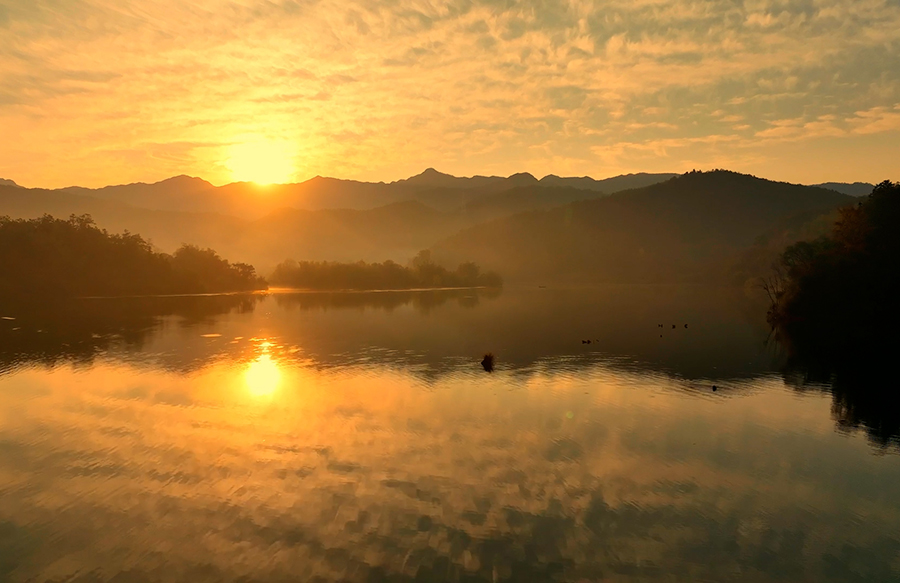 10月29日,在安徽省池州市的秋浦河畔,朝霞與水面相映成趣,泛舟秋浦河仿佛置身仙境。秋浦河是長江支流,風光秀美,因唐代詩人李白的《秋浦歌十七首》等詩作而聞名。新華網(wǎng)發(fā)(王帆 攝)