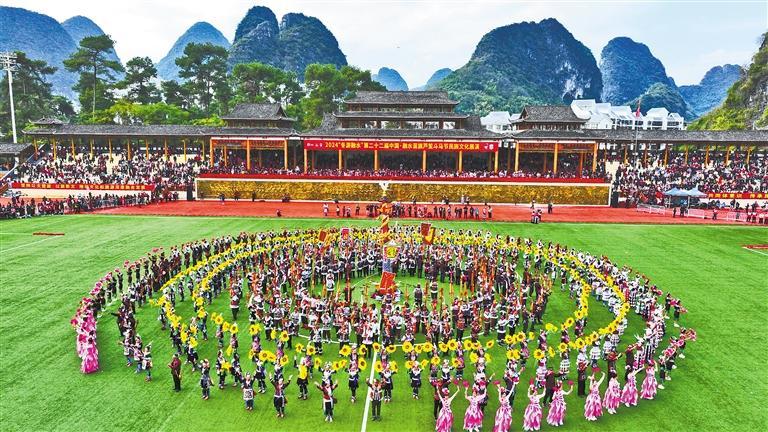 11月23日,廣西柳州市融水苗族自治縣民族體育公園,群眾身著盛裝參加民族文化展演活動,吸引了八方游客。黎寒池攝(中經視覺)