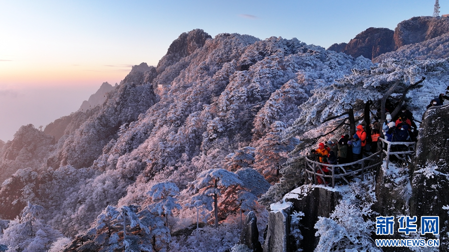 近日,安徽黃山雪后初霽,山峰銀裝素裹,滿目玉樹(shù)瓊枝。云霧如同舞者般在白雪皚皚的峰巒間穿梭嬉戲,宛如一幅渾然天成的水墨丹青。