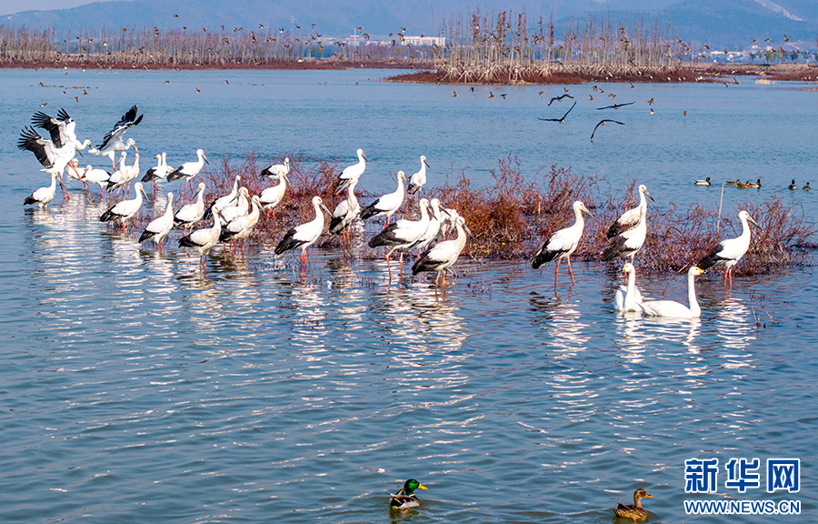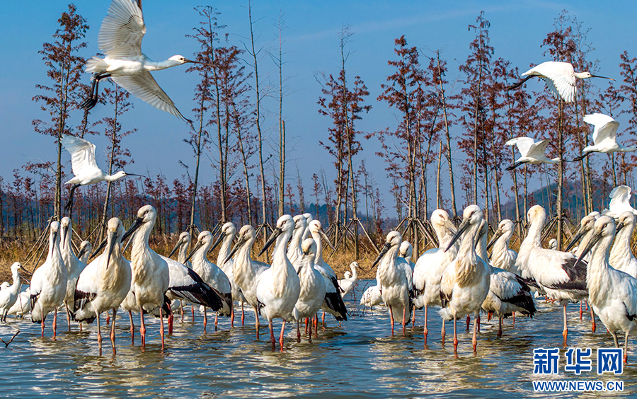 近年來,廬江縣加大黃陂湖濕地保護力度,4萬多畝的濕地環(huán)境得到較大改善。每年冬季,東方白鸛、白鶴等大量珍稀候鳥都按時來此過冬,萬鳥齊飛的壯觀場面已經(jīng)成為廬江縣黃陂湖濕地最靚麗的風景。新華網(wǎng)發(fā)(左學長 攝)