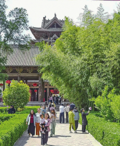 ③4月26日,游人在萬榮縣東岳廟游玩,在宜人的春光里觀賞純木質(zhì)結構建筑飛云樓,感受傳統(tǒng)文化的魅力。