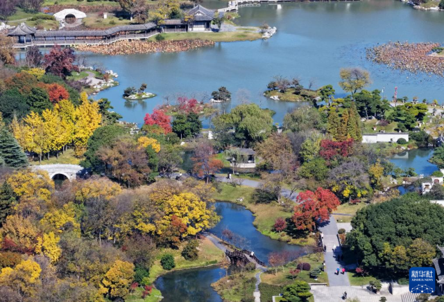 11月19日拍攝的江蘇揚州瘦西湖風(fēng)景區(qū)(無人機(jī)照片)。