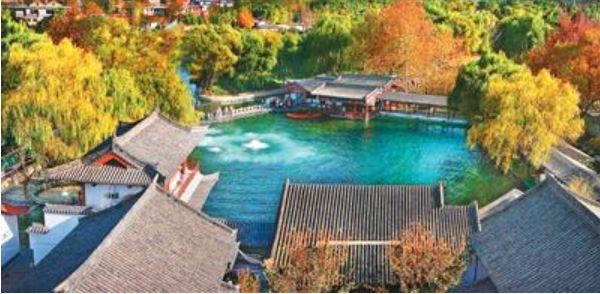 我問:“墻上寫的‘家家泉水,戶戶垂楊’,是真的嗎?”