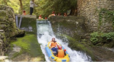 2026年4月25日,位于廣西桂林市陽(yáng)朔縣興坪鎮(zhèn)的龍頸河景區(qū),游客正在體驗(yàn)驚險(xiǎn)刺激的漂流。黃勝林?jǐn)z(人民圖片網(wǎng))