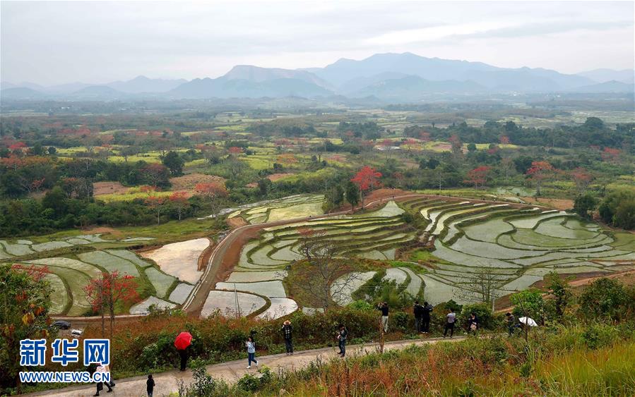 2月20日,游客在昌江霸王嶺觀賞木棉花。早春時(shí)節(jié),海南省昌江黎族自治縣的木棉花競相綻放,吸引大批游客前來踏春賞花。 新華社記者 郭程 攝