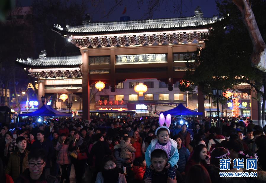 2月22日晚,游人在夫子廟景區(qū)觀燈游玩。當(dāng)晚,在江蘇南京夫子廟秦淮風(fēng)光帶舉辦的秦淮燈會(huì)彩燈齊放,人們前來觀燈鬧元宵。 新華社記者孫參攝