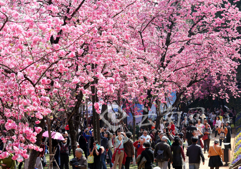 3月13日,昆明圓通動物園人潮涌動,數(shù)千株櫻花和海棠進(jìn)入盛花期,吸引大批游客前來賞花觀景。