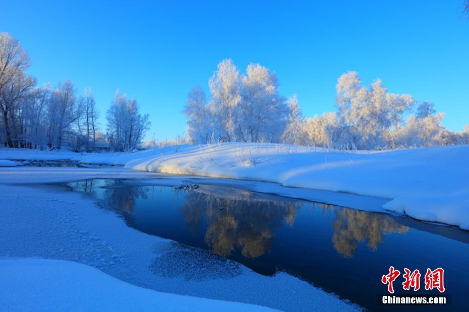 連日來(lái),新疆北部持續(xù)低溫,哈巴河縣受寒冷天氣的影響,出現(xiàn)了大面積霜掛美景。一棵棵白樺樹(shù)被妝點(diǎn)成銀白色,晶瑩剔透,潔白無(wú)瑕,置身其中,如同進(jìn)入夢(mèng)幻世界一般。圖為清晨的哈巴河縣銀裝素裹,云霧繚繞。 劉是何 攝