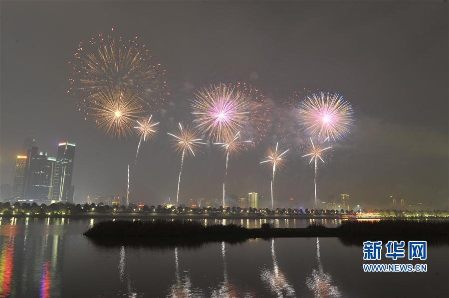 2017年1月1日夜晚,長(zhǎng)沙橘子洲附近湘江上空綻放絢麗焰火。當(dāng)晚,湖南長(zhǎng)沙橘子洲舉行焰火晚會(huì)慶祝新年到來(lái)。整場(chǎng)焰火晚會(huì)主題為“多彩星城、魅力長(zhǎng)沙”,焰火燃放時(shí)間約20分鐘。 新華社記者 龍弘濤攝