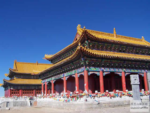 五臺山中臺翠巖峰,又名平頂山,海拔2894米,居?xùn)|、西、南、北四臺的中心,也是四臺的發(fā)脈之祖,臺頂面積也最大?!肚鍥錾街尽吩疲骸皫p巒雄曠,翠靄浮空”。其山勢酷似一頭挺立的雄獅。臺頂寺院名作演教寺,內(nèi)供孺童文殊。