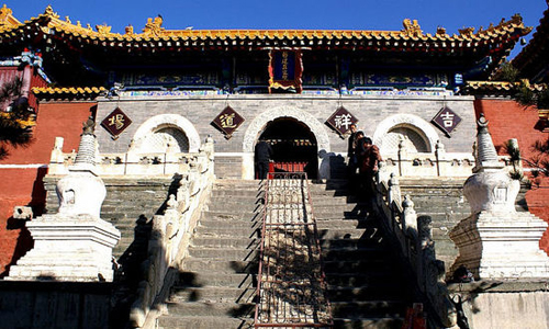 臺(tái)懷鎮(zhèn)鎮(zhèn)北有一小峰,人稱靈鷲峰,亦名菩薩頂。所以稱之為靈鷲峰,是因?yàn)樗牡乩硇蝿?shì)頗似古印度摩揭陀國(guó)王舍城東北部釋迦牟尼佛說(shuō)法的靈鷲峰故名。據(jù)佛教史籍記載,東漢時(shí)期,我國(guó)佛教最初的傳播人攝摩騰和竺法蘭來(lái)到臺(tái)懷鎮(zhèn),見(jiàn)今菩薩頂?shù)男蝿?shì)頗似印度的靈鷲峰,因而命名之。所以也稱靈鷲峰為菩薩頂,佛教徒傳說(shuō)文殊菩薩曾在峰頂顯靈和說(shuō)法。