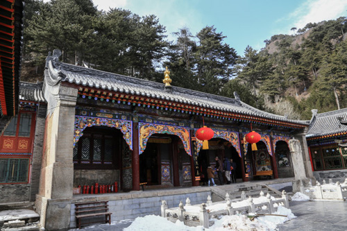 現(xiàn)僅存有四座大殿,分別是天王殿、大雄寶殿、觀音殿和關(guān)公殿,其中觀音殿又稱文殊殿,殿內(nèi)供奉有五尊菩薩,兩側(cè)是十八羅漢。寺后有一座小院,院內(nèi)有乾隆五十一年建造的十五世章嘉活佛墓塔。墓塔八面雕有精細(xì)的人物圖案。章嘉活佛是黃教中一個(gè)歷代沿襲的職位,其地位僅次于達(dá)賴、班禪活佛??滴趸实圩鹫录位罘馂椤按髧鴰煛保屍浣y(tǒng)管內(nèi)蒙五十旗。第十九世章嘉活佛、即末世活佛被袁世凱委任為北京、西寧、五臺山黃教的首領(lǐng),后來還擔(dān)任了國大代表。這個(gè)末世活佛在五臺山擁有極大權(quán)力,因鎮(zhèn)海寺是他的行署,所以鎮(zhèn)海寺的規(guī)模也日漸龐大。