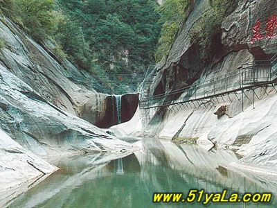 五指峽中的黑龍?zhí)端浅G宄海K年流淌不息,在這個(gè)還有一個(gè)很有趣的說(shuō)法,據(jù)說(shuō)每到大旱的時(shí)刻人們就到這幾來(lái)求雨,但是求雨的人一定要是屬龍和蛇的,因?yàn)槭刈o(hù)著黑龍?zhí)兜氖且粭l黑龍。清澈的山澗為來(lái)到這里的人們帶來(lái)了快樂(lè)。游人可以泛舟水上,進(jìn)行皮筏漂流。