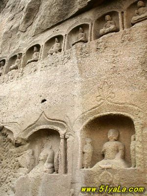 天龍山石窟在山西太原市西南40公里天龍山腰。天龍山亦名方山,海拔高1700米。這里風(fēng)光秀麗,歷史上曾是北齊皇帝高洋之父高歡的避暑宮。四周山巒起伏,遍山松柏蔥郁,山頭龍王石洞泉水蕩漾,山前溪澗清流潺潺。天龍山石窟創(chuàng)建于東魏(公元534—550年),高歡在天龍山開鑿石窟,高歡之子高洋建立北齊的晉陽為別都,繼續(xù)在天龍山開鑿石窟。隋代楊廣為晉王,繼續(xù)開鑿石窟,唐代李淵父子起家于晉陽,建造石窟達(dá)到高峰。