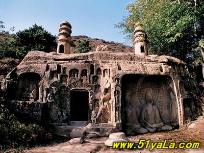 羊頭山梵剎,名曰清化寺,據(jù)記載始建于北魏孝文帝太和年間(四七七——四九九年),原名定國寺,北齊時(shí)改名宏福寺,隋末寺廢,唐武則天天授二年(六九一年)重建,并改額清化。今清化寺建筑已不存,尚留石佛三尊、明碑一通和殿堂遺址,但寺周北魏至隋唐時(shí)期窟龕造像和石塔仍依然如故。