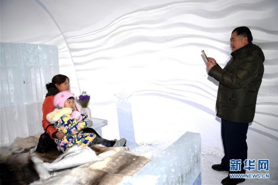 12月24日,在內(nèi)蒙古根河市敖魯古雅鄂溫克民族鄉(xiāng),游客在冰雪酒店里拍照留念。當(dāng)日,第五屆中國(guó)冷極節(jié)在內(nèi)蒙古自治區(qū)根河市開(kāi)幕。根河市素稱(chēng)“中國(guó)冷極”,當(dāng)?shù)乩帽┵Y源,并結(jié)合獨(dú)特的鄂溫克民族風(fēng)情,打造冬季旅游項(xiàng)目,為游客帶來(lái)不一樣的冰雪體驗(yàn)。新華社記者劉磊攝