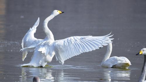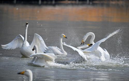 隨著天氣逐漸轉暖,在平陸黃河濕地越冬的白天鵝迎來北遷高峰,返回西伯利亞。平陸黃河濕地是國內白天鵝越冬地之一,每年到此越冬的白天鵝數(shù)量在1萬只左右。薛俊 攝影報道