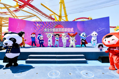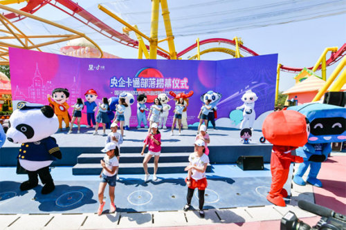 “國資小新”攜手中國華電“華小電”、中國電建“吉娃”、中國電科“小推”、華潤集團“嗨皮潤”、中國建筑“藍寶”、中國石化“小石頭”、南網電網“小赫茲”、中國核電“華龍寶寶”、中國建材“小料”、中遠海運“PANDA”、中化集團“小化”、中國鐵建“福鹿娃”等12家央企卡通形象,打破次元壁,卡通雕塑落地北京歡樂谷,傾力打造與公眾零距離的“央企卡通部落”。它們賣萌有度、服務貼心,接地氣、聚人氣。在來自政、企、媒、學等領域的近300位嘉賓及觀眾的見證下,央企新聞宣傳負責人為各自的卡通雕塑揭幕。從平面化、虛擬化的卡通形象到立體化、實物化的卡通雕塑,“國資小新”與央企卡通以全新的面貌和大家見面,并常駐北京歡樂谷。