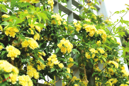 黃木香是薔薇科薔薇屬植物,攀緣小灌木,高度可達(dá)6米?;ㄐ⌒停喽涑蓚阈位ㄐ?,花重瓣黃色。黃木香的生長速度非常快,輕輕松松就可以長成一面花墻,它的枝條柔軟,像一個(gè)個(gè)藤蔓精靈,在園藝師的奇思妙想下,或成為墻壁精美的外衫,或可將一個(gè)普通的架子攀援成蜿蜒