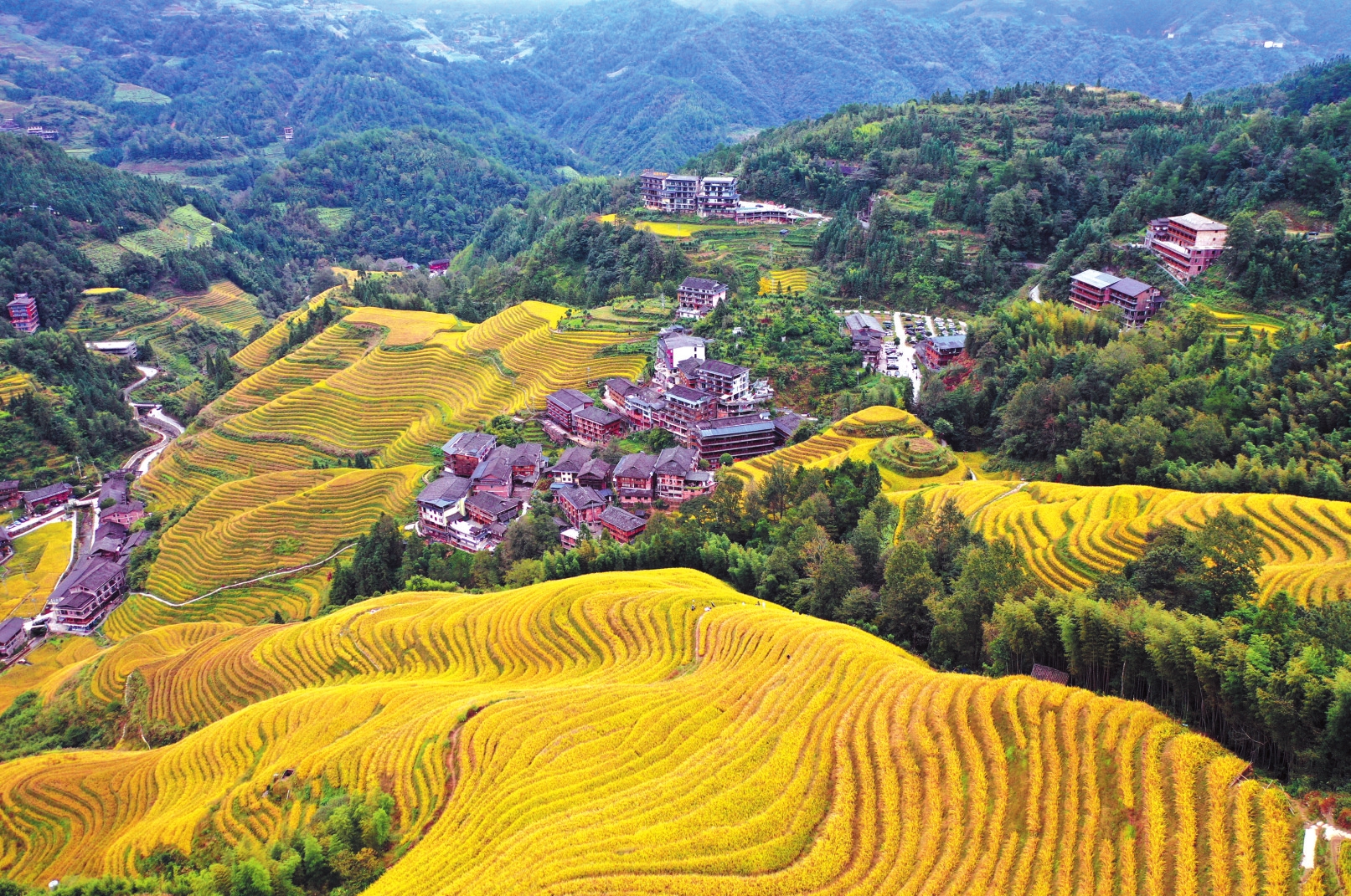 眼下,廣西龍勝各族自治縣龍脊梯田一片金黃,成為眾多游客觀光“打卡”的熱門景點。龍脊梯田已有2300多年歷史,是聯(lián)合國糧農(nóng)組織認(rèn)證的全球重要農(nóng)業(yè)文化遺產(chǎn)。新華社記者陸波岸 攝