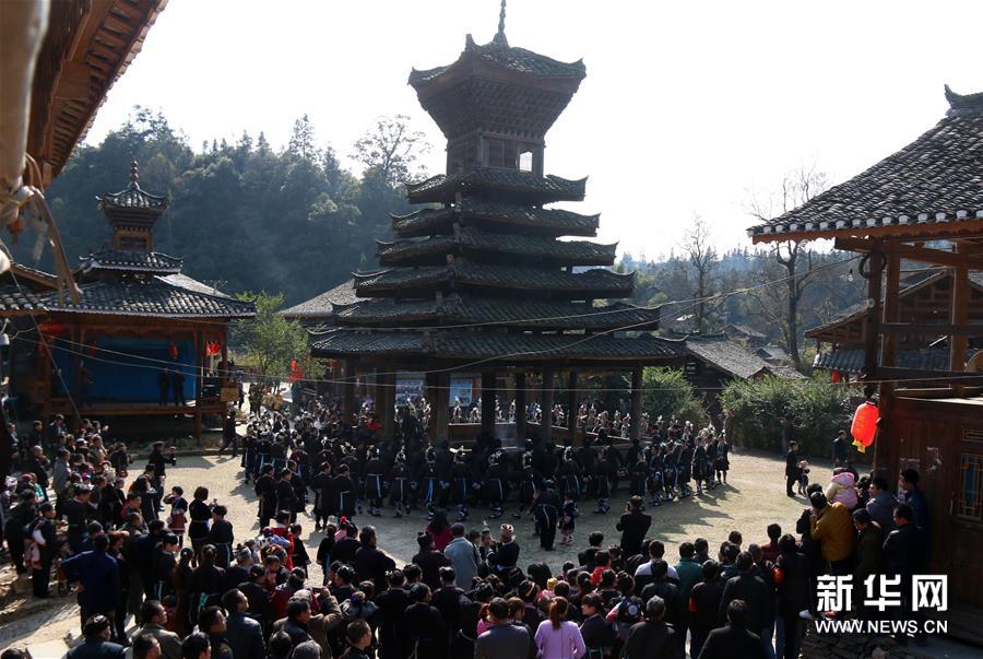 2月17日,貴州省黔東南苗族侗族自治州黎平縣巖洞鎮(zhèn)述洞村開展一年一度的“鼓樓之宗”活動。侗族老人在當?shù)刈罟爬系墓臉恰冀ㄓ诿鞔莫氈臉侵v述侗族遷徙歷程,告誡大家要敬老尊賢、和睦相處、團結(jié)友善,侗族青年男女身著節(jié)日盛裝圍著鼓樓一邊踩歌堂,一邊唱遷徙古歌,之后在鼓樓旁進行“侗族大歌”對唱,感懷族群遷徙的歷史,傳承傳統(tǒng)文化。新華社發(fā)(楊代富 攝)