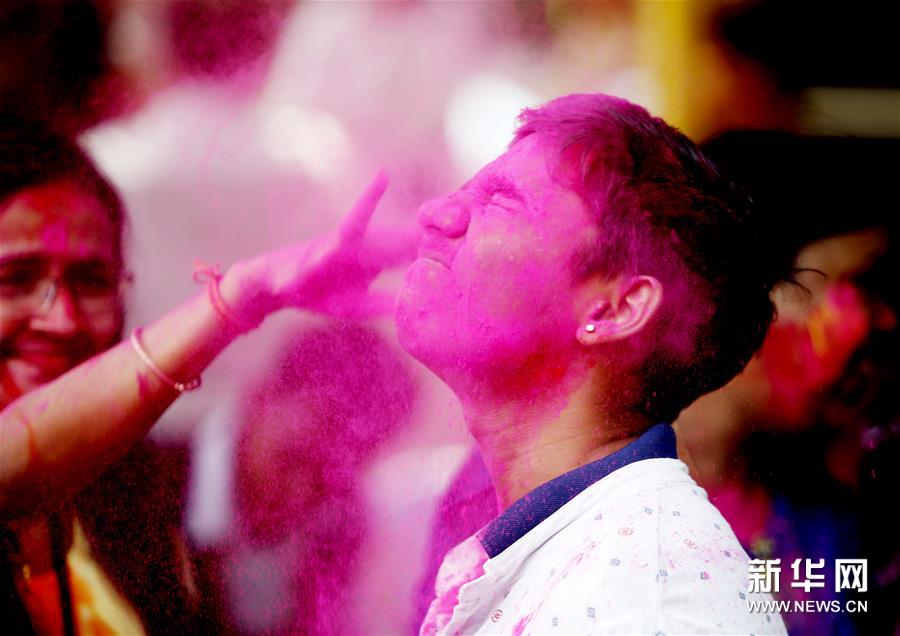 胡里節(jié)也叫“灑紅節(jié)”,人們在自己臉上和身上涂上顏料,還向別人拋撒五顏六色的顏料和粉末,迎接春天的到來。新華社發(fā)(吳昂 攝)