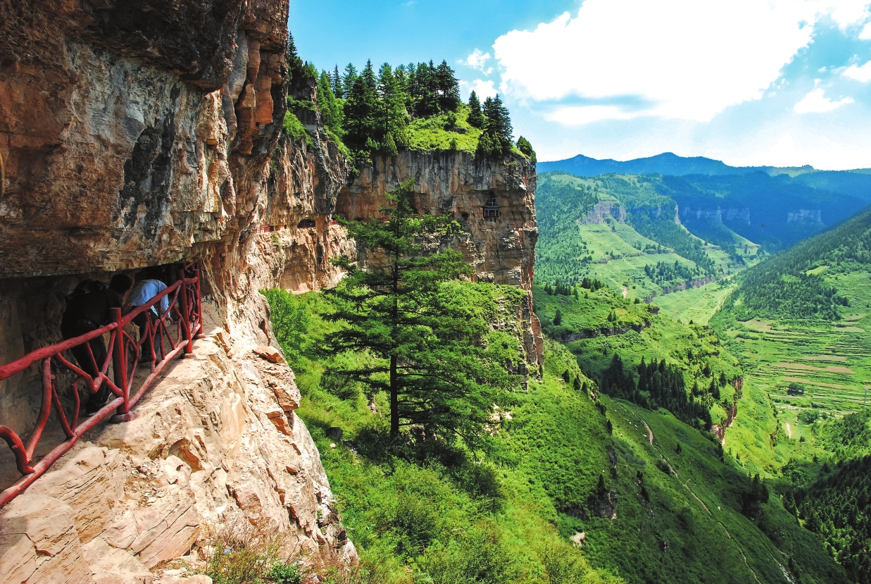 荷葉坪 潘曉華攝 荷葉坪 荷葉坪是華北地區(qū)最大的亞高山草甸,素有“高原翡翠”之美譽。因其山頂平坦如盤,形似荷葉,故名“荷葉坪”。荷葉坪現(xiàn)存的隋代長城遺跡沿山脊蜿蜒起伏,與五寨筆架山邊墻相連,墻體夯土痕跡清晰可辨,是研究北方游牧文明與中原農耕文明交融的重要實物佐證。據(jù)地方史料及民間遺存印證,楊六郎曾在此屯兵練兵,北將臺、南將臺兩座高臺便是當年的點將之所。 每到盛夏,荷葉坪一碧萬頃,百草豐茂;山花爛漫,涼爽宜人。草甸之上最神奇的莫過于那數(shù)十個“海子”,這些圓形高山湖泊“遇旱不涸,遇澇不溢”,水質清澈如鏡。草甸周邊還分布著云杉、華北落葉松等植被,孕育著黨參、黃芪等多種名貴藥材,是名副其實的“生態(tài)寶庫”。 2021年,荷葉坪被列入國家草原自然公園試點,如今已成為避暑度假與文化尋蹤的勝地。登臨其頂,既可觸摸長城殘垣的歷史溫度,聆聽楊家將的英雄傳說,又能擁抱草甸海子的自然靈秀,感受黃土高原上獨有的生態(tài)與人文共鳴。 石門懸棺 在寧武縣小石門村西的一處幽僻山谷間,藏著北方獨有的人文奇觀——石門懸棺,它既是蘆芽山景區(qū)的核心景點,更是長江以北迄今發(fā)現(xiàn)的唯一崖葬群。谷口天然石壁如巨門洞開,將這片秘境與塵世巧妙相隔。 踏入谷中便見滿目蔥蘢,翠蓋遮頂,百米高的崖壁陡直如削,崖隙間的松柏旁逸斜出,與壁上懸棺相映成景。溪澗在谷底潺潺流淌,負氧離子裹挾著草木清香漫溢山間,干燥的崖壁為棺木形成天然庇護所。陽光穿透枝葉,在懸棺上投下斑駁光影,光影流轉間,仿佛能聽見歷史的回響。 據(jù)了解,這片懸棺群涵蓋洞穴式、懸吊式、懸樁式、棧道式等類型,堪稱“崖葬博物館”。棺木或以鐵鏈懸吊,或嵌于巖洞,或架于木樁,單棺獨懸有之,雙棺并列有之,上有崖穹護頂,錯落分布,下處避水、陰涼、干燥之處,距地面最高達數(shù)十米,可嘆先人的智慧與苦心。如今,這片奇觀已成為解讀北方喪葬文化的獨特樣本,既是自然與人文的共生之作,更是黃土高原上永不褪色的文明印記。 懸空村 從寧武縣城西行約70公里,穿過層層松林,便可見百米崖壁如斧劈刀削,數(shù)十座木屋沿崖勢錯落,恍若“天上人家”,這里就是王化溝村。從谷底仰望,又似空中樓閣,故而人們還稱其為“懸空村”。懸空村順崖就勢而建,碗口粗的原木斜插崖縫為柱,鋪板相連成路,行走時偶有輕晃,卻能憑欄望見云海漫過馬侖草原,瞥見蘆芽山主峰隱于天際。干燥的崖壁為屋舍提供天然庇護,晨霧中炊煙裊裊,與松濤、溪聲共譜山野樂章。 懸空村匿于深山老林中,故村民的生活方式仍然比較傳統(tǒng),主要交通工具是牲畜,村里的生活必需品都是靠騾馬運送。莜面、豆面和土豆是村民的主要食物,村中山泉長流不斷,是全村日常生活的水源。村民房舍坐北向南,避風向陽,依山而靠,高低錯落,下面以豎立在天然石壁上的大木柱為支撐,看似危如累卵,實則相當堅固。 圓木為壘、土石為墻,擋不住歷史前進的步伐;牛羊成群、雞豕?jié)M圈,抵不過時代快速的變遷。如今,懸空村已發(fā)生了翻天覆地的變化。近年來,寧武縣以全域旅游和美麗鄉(xiāng)村建設為重要抓手,逐漸加大對古村落的保護和維修力度,隨著其知名度不斷提升,游客紛至沓來,許多村民也回遷居住,村子再現(xiàn)往日生機。 雷鳴寺 雷鳴寺位于汾河源頭的崖壁之上,此處山形如空甕,地下暗河與崖壁激蕩,水聲如雷貫耳,寺名便源于這天地交響的壯闊意境。寺廟坐北向南,建于半山之上。從戲臺開始,需登108級臺階才能到達山門。山門兩側有配房,中軸線上設有木牌坊,兩側各建鐘鼓樓。進入山門后,東西禪房簇擁著七間正殿,其中真武殿位于中間,供奉著真武大帝。 雷鳴寺周圍的自然景致與水文奇觀渾然一體,古松翠柏掩映朱檐,山泉溪流縈繞階前,寺旁的泉眼汩汩涌動,清澈泉水從石崖龍口奔涌而出。登高遠眺,樓子山頂?shù)目情w與寺宇上下呼應,林海與溪流構成一幅立體的山水畫卷。 雷鳴寺的始建年代雖無確切記載,但據(jù)明清文獻佐證,在唐代已具雛形,明正德年間首次大規(guī)模重修,清同治年間由學者徐松龕撰寫重修碑文。20世紀末,當?shù)卣涝季种亟ɡ坐Q寺,現(xiàn)存建筑雖為新構,卻完整保留了古寺規(guī)制:大雄寶殿采用全木質結構,梁架間的石雕、磚雕紋樣仍可見明清遺韻。 如今的雷鳴寺,晨鐘暮鼓與汾河濤聲共鳴,既延續(xù)著“梵音伴雷鳴”的千年意境,也成為解讀晉西北山水與人文共生密碼的必訪之地。 汾河源頭 汾河源頭位于管涔山北麓,是三晉大地的“母親河”、黃河第二大支流——汾河發(fā)源地,被譽為“晉地之根”。古籍《山海經》云“管涔之山,汾水出焉”,這是關于汾河源頭的最早文字記錄。北魏酈道元《水經注》中亦曾生動記錄,“汾水又南,與東、西溫溪合,水出左右近溪,聲流翼注。水上雜樹交陰,云垂煙接。自是水流潭漲,波襄轉泛”,將汾河源頭青峰疊嶂、云蒸霞蔚的景象描繪得有聲有色。 汾河源頭所處地形陡峭,起伏崎嶇,群山聳立,高峻巍峨,溝谷交錯發(fā)育,森林覆蓋率高。泉水從山腳下石壁縫隙中涌出,直接流入泉口前的方形池沼內,再通過一石鑿的龍口噴瀉,進入寬闊的汾河河道之中。清道光年間,官至福建巡撫大臣的五臺人徐繼畬撰《修建汾源廟樓記》,在文中稱贊此處“噴薄一溪,灌注