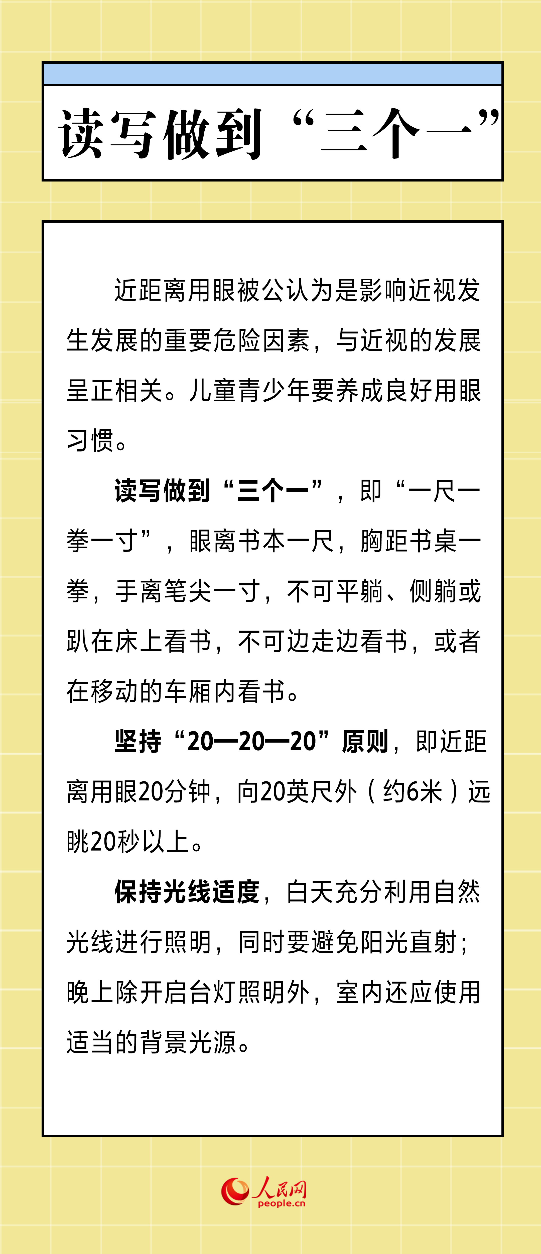 近年來(lái),我國(guó)近視發(fā)生率居高不下,近視已成為影響我國(guó)國(guó)民尤其是兒童青少年眼健康的重大公共衛(wèi)生問(wèn)題?!笆罴贂r(shí)間長(zhǎng),兒童青少年如果生活作息不規(guī)律、戶外活動(dòng)不足、長(zhǎng)時(shí)間近距離用眼,很容易發(fā)生近視或加深近視程度?!焙笔和嗌倌杲暦乐沃行闹魅巍⑽錆h大學(xué)人民醫(yī)院(湖北省人民醫(yī)院)眼IV科主任周煉紅在接受人民網(wǎng)記者采訪時(shí)表示,家長(zhǎng)要從孩子出生就樹(shù)立近視防控意識(shí),給孩子一個(gè)健康視覺(jué)環(huán)境,幫助孩子養(yǎng)成良好用眼習(xí)慣。