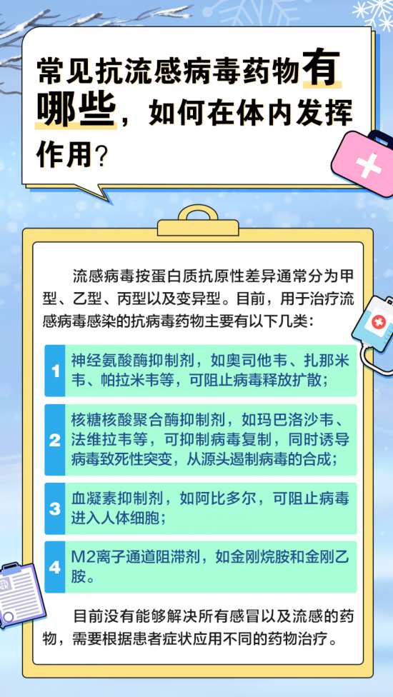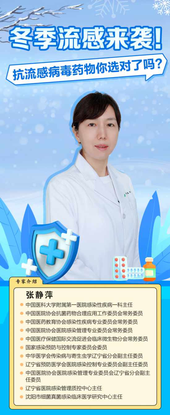 冬季氣溫驟降,流感來勢洶洶。流感是一種由流感病毒引起的急性呼吸道傳染病,在人群中有較高的發(fā)病率。流感患者通常會出現(xiàn)發(fā)熱、咳嗽或咽痛等癥狀。部分癥狀較重的患者還會感到頭痛、惡心、肌肉酸痛,甚至出現(xiàn)肺炎等并發(fā)癥,需要及時(shí)就醫(yī)用藥治療。那么,常見的抗流感藥物有哪些?抗病毒藥物治療的最佳時(shí)間是什么?怎樣服藥更科學(xué)有效?本期請到中國醫(yī)科大學(xué)附屬第一醫(yī)院感染性疾病一科主任張靜萍教授為大家解疑釋惑。