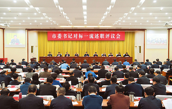 圖為市委書記對(duì)標(biāo)一流述職評(píng)議會(huì)會(huì)場。 本報(bào)記者 李聯(lián)軍攝