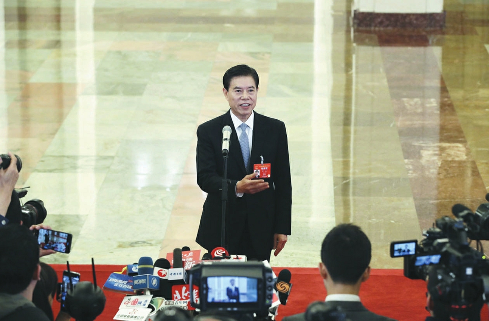 3月5日上午,十三屆全國人大二次會(huì)議開幕會(huì)結(jié)束后,第二場“部長通道”舉行。銀保監(jiān)會(huì)主席郭樹清、商務(wù)部部長鐘山、交通運(yùn)輸部部長李小鵬、工信部部長苗圩、海關(guān)總署署長倪岳峰、國家市場監(jiān)管總局局長張茅、農(nóng)業(yè)農(nóng)村部部長韓長賦、國臺(tái)辦主任劉結(jié)一先后亮相,回應(yīng)熱點(diǎn)問題。