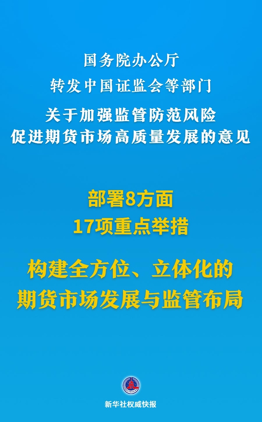 日前,國(guó)務(wù)院辦公廳轉(zhuǎn)發(fā)中國(guó)證監(jiān)會(huì)等部門《關(guān)于加強(qiáng)監(jiān)管防范風(fēng)險(xiǎn)促進(jìn)期貨市場(chǎng)高質(zhì)量發(fā)展的意見(jiàn)》。這一專門針對(duì)期貨市場(chǎng)的綜合性文件,系統(tǒng)全面部署8個(gè)方面的政策措施,推動(dòng)構(gòu)建全方位、立體化的期貨市場(chǎng)發(fā)展與監(jiān)管布局。