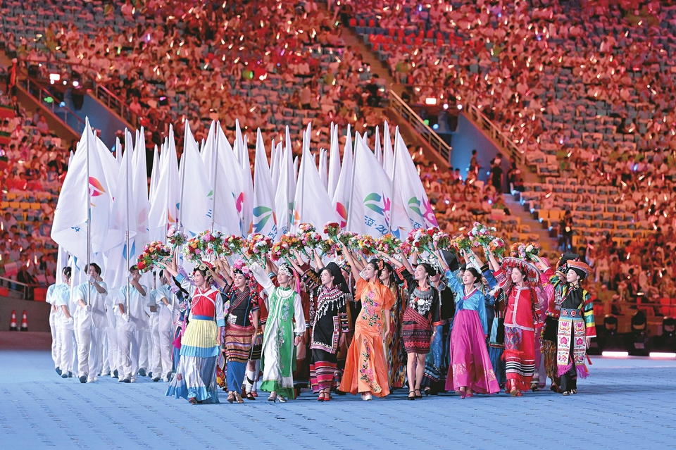 11月22日,中華人民共和國第十二屆少數(shù)民族傳統(tǒng)體育運動會會旗方陣在開幕式上入場。當(dāng)日,中華人民共和國第十二屆少數(shù)民族傳統(tǒng)體育運動會開幕式在海南省三亞市舉行。據(jù)新華社
