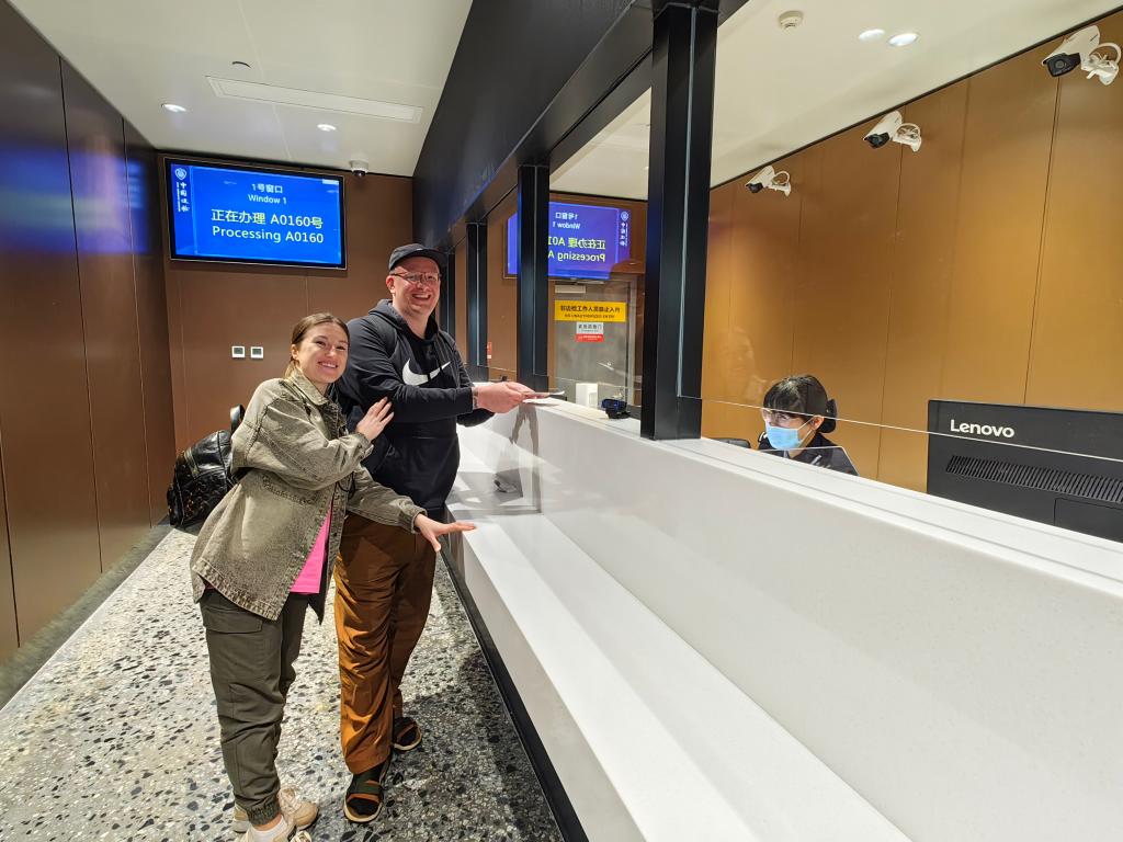 11月24日,正在辦理144小時(shí)過境免簽手續(xù)的俄羅斯旅客。(北京大興機(jī)場(chǎng)邊檢站供圖)