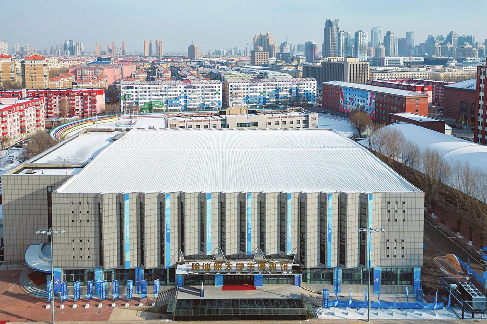 圖為1月27日拍攝的哈爾濱體育學(xué)院大學(xué)生滑冰館(女子冰球比賽場館)。