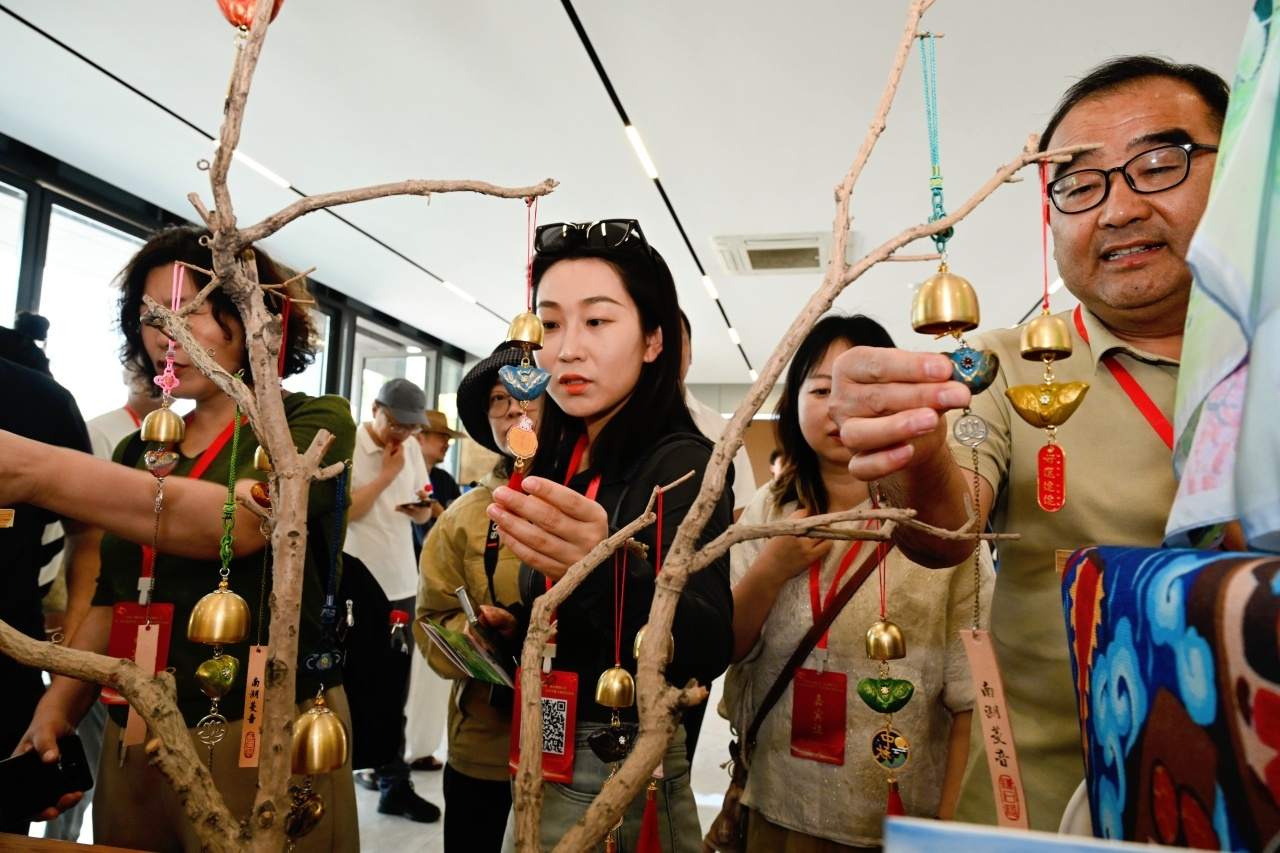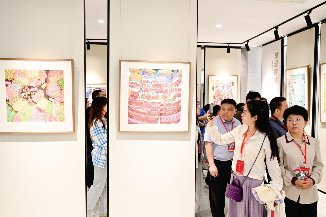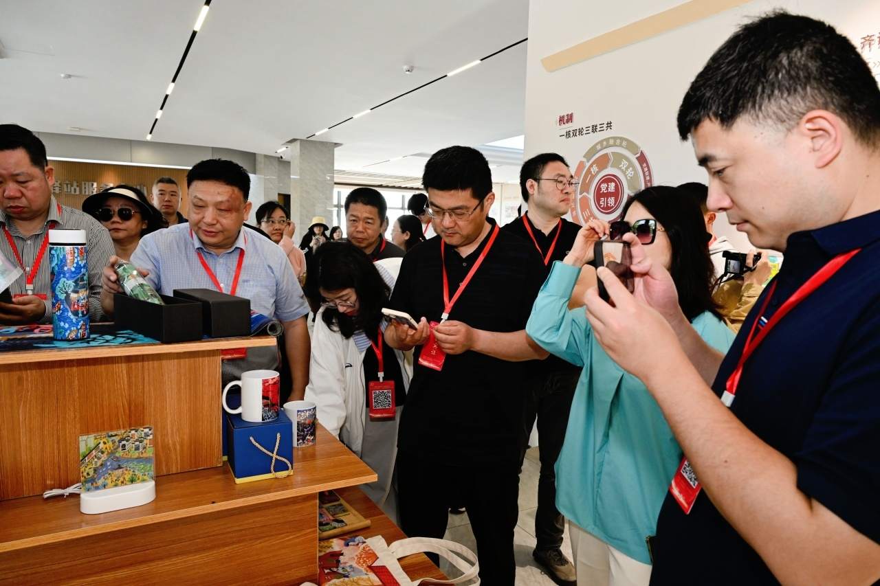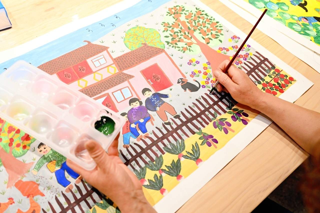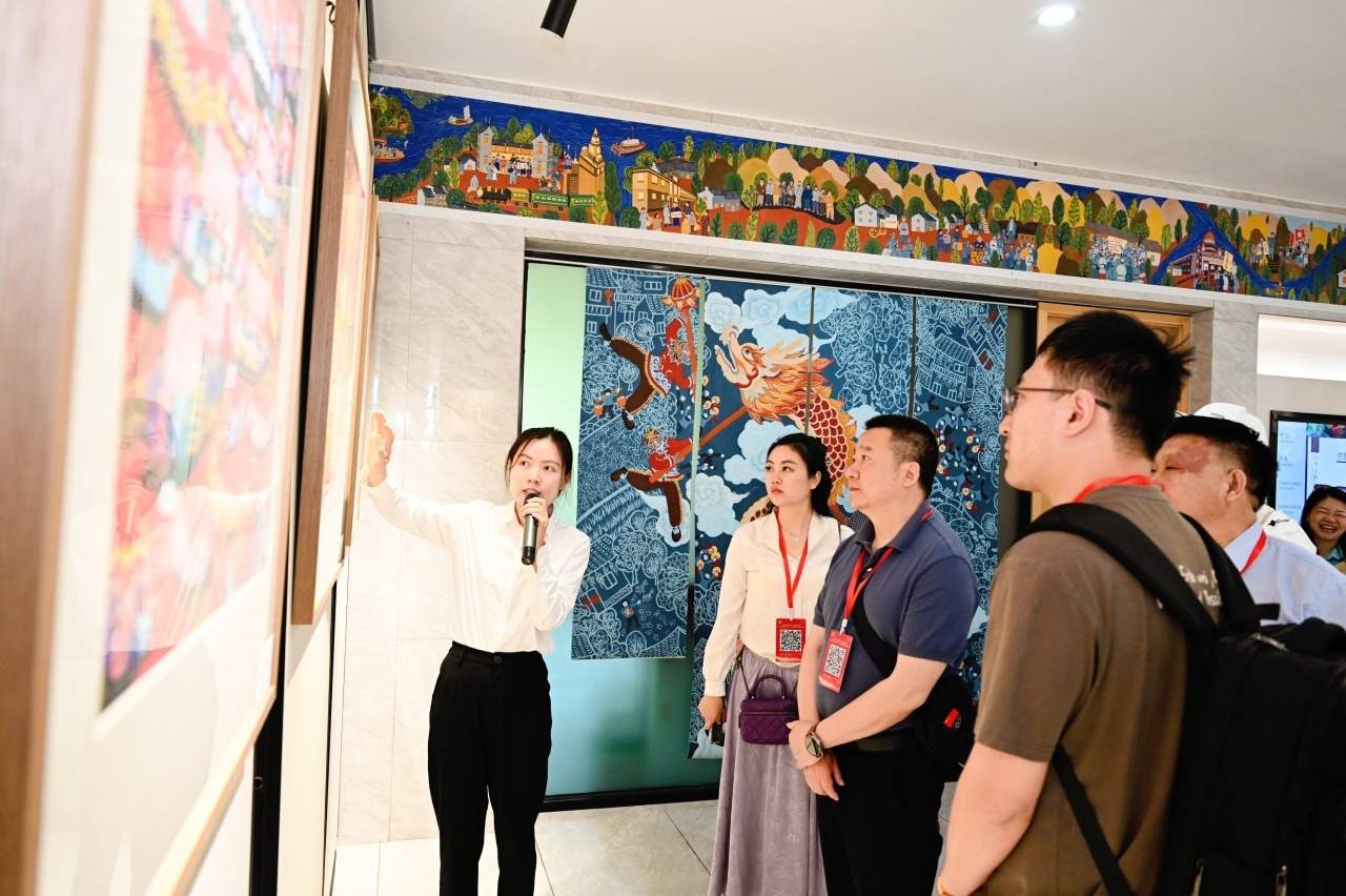 在農(nóng)民畫藝術(shù)展示空間,記者們?cè)诖迕竦霓r(nóng)民畫作品中感受到他們濃烈的幸福感與獲得感;“假日農(nóng)民畫非遺課堂”、農(nóng)民畫熱轉(zhuǎn)印體驗(yàn)等一系列研學(xué)課程、體驗(yàn)項(xiàng)目的開展,又讓大家真切體會(huì)到農(nóng)民畫與產(chǎn)業(yè)的有機(jī)融合;一樓大廳“驛站”里,基于秀洲農(nóng)民畫開發(fā)的各式文創(chuàng)產(chǎn)品令人忍不住就想“買買買”……