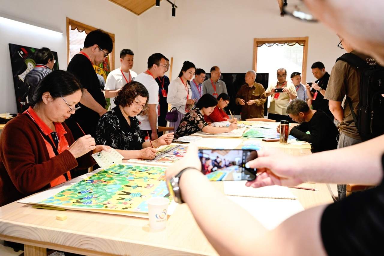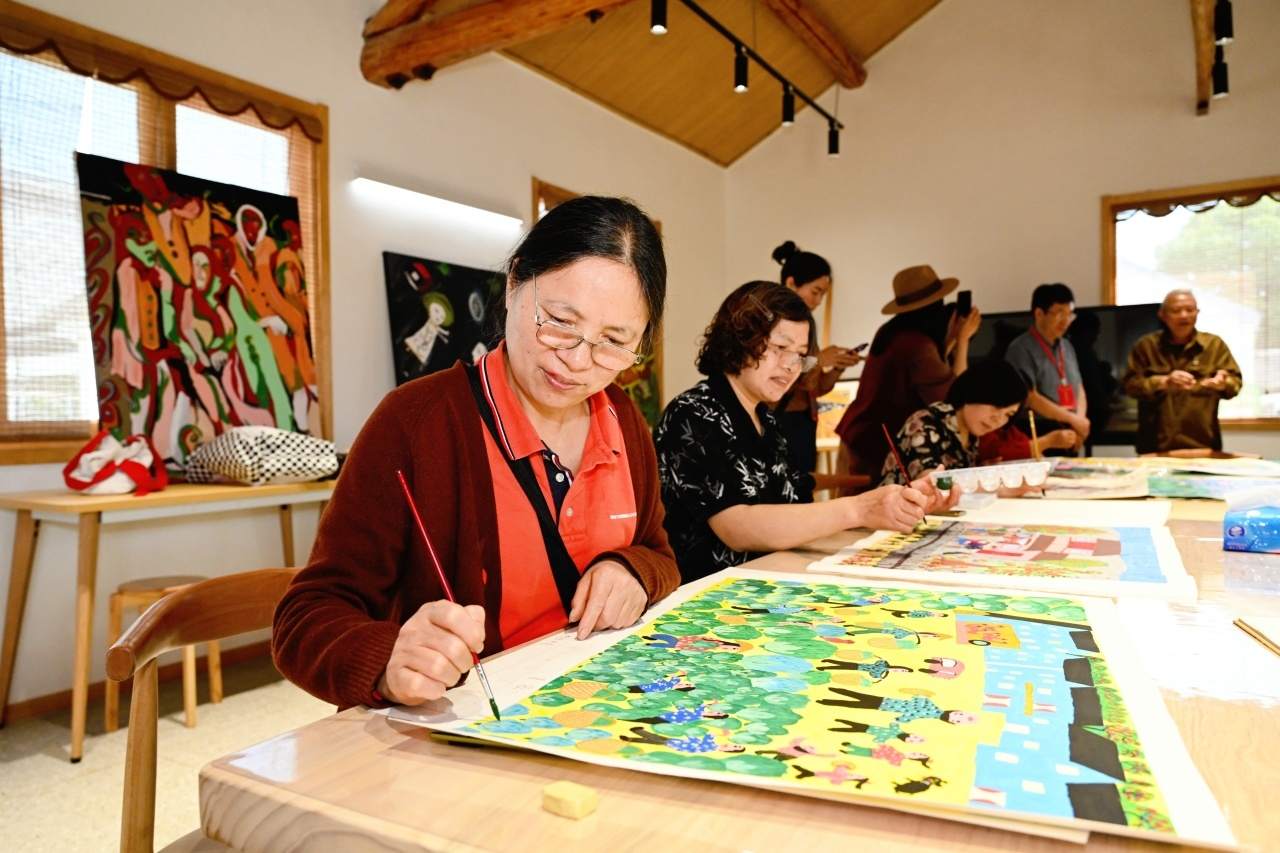 村內(nèi)傳承著農(nóng)民畫、糖糕版雕刻技藝、造船技藝為代表的省市級(jí)非物質(zhì)文化遺產(chǎn),建設(shè)有中國(guó)現(xiàn)代民間繪畫秀洲創(chuàng)作基地、村口集市、千畝棧道、糖糕館、船匠技藝館等,還引進(jìn)了沐杭咖啡、颶風(fēng)摩托艇俱樂部、原膳餐飲等特色產(chǎn)業(yè),讓記者們清楚地看見藝術(shù)為鄉(xiāng)村賦能的真實(shí)過程。
