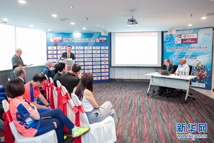 ↑7月17日,2018年羽毛球世錦賽抽簽儀式在馬來西亞吉隆坡舉行。本屆羽毛球世錦賽將于7月30日到8月5日在中國南京舉行。這是抽簽儀式現(xiàn)場(chǎng)。 新華社記者朱煒攝