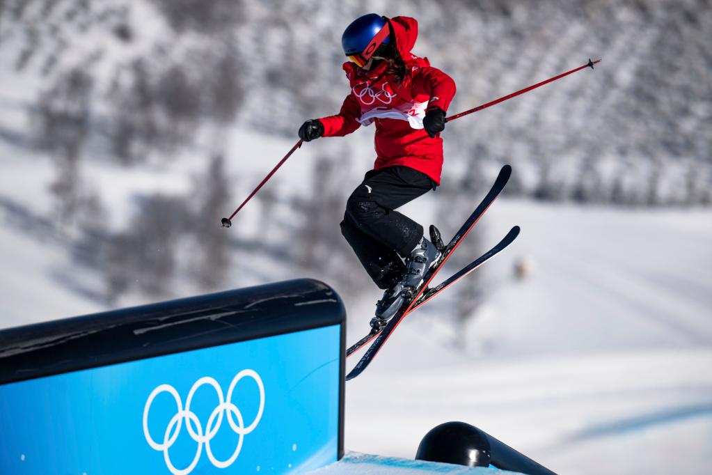 2月14日,中國選手谷愛凌在北京冬奧會自由式滑雪女子坡面障礙技巧資格賽中。新華社記者肖藝九攝