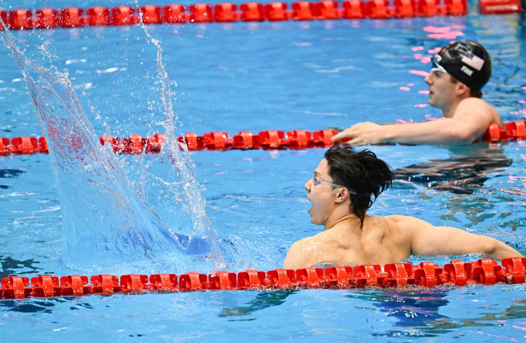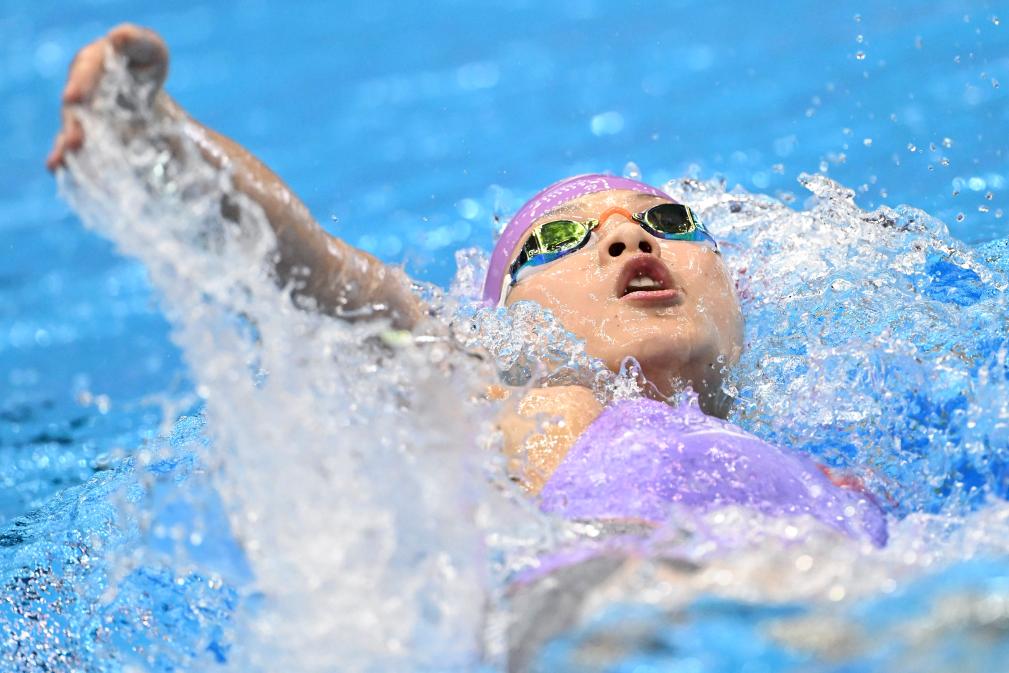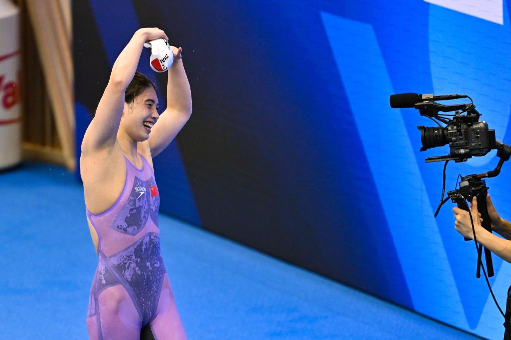 覃海洋摘金短短幾分鐘后,中國蝶泳名將張雨霏在女子100米蝶泳決賽中以56秒12的成績獲得冠軍,如愿以償?shù)財[脫了世錦賽“銅牌專業(yè)戶”的稱呼,奪得個人首枚世錦賽金牌。雖然在東京奧運會拿到200米蝶泳冠軍,但張雨霏在世錦賽上一直不太順利,在2022年布達(dá)佩斯世錦賽女子蝶泳從50米到200米三個距離的比賽中全部獲得銅牌。